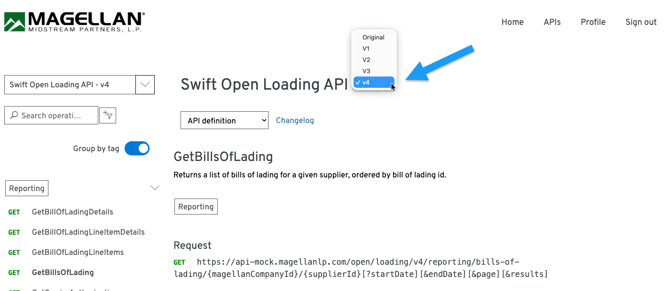 To view the parameters and output for each endpoint version, use the menu located to the right of the library name.