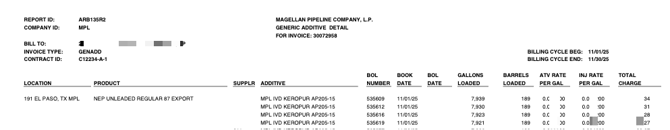 | ADDPROPCFI | PROPRIETARY COLD FLOW IMPROVER ADDITIVE INVOICE |