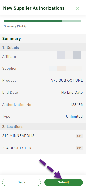 10. Review Authorization. Click Submit.