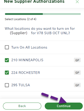 Users can quickly set up new supplier authorizations by location for multiple products.