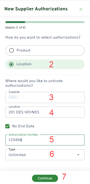 Authorize by Supplier, Product or Location.