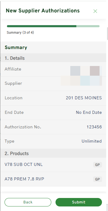 **NOTE: If you do not own all components of the blend (i.e., ethanol), set up this product as a Supplier Directed Blend.**What is a Supplier Authorization?