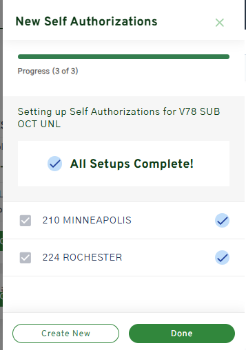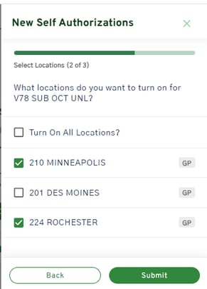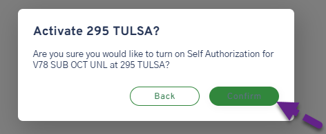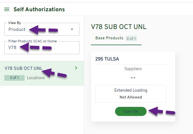 Within Self Authorizations, enable (turn on) A78 and V78 new product code to prepare for 1-psi Reid Vapor Pressure (RVP) waiver.
