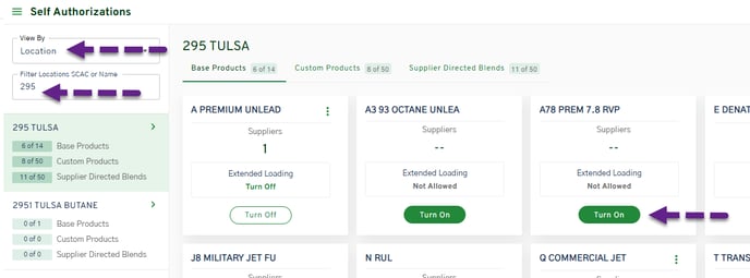 - Click Turn On for the necessary products under the Custom Products tab or Supplier Directed Blend tab.