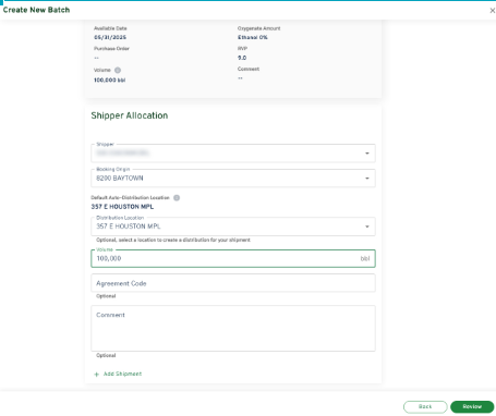 - Default Auto Distribution Location: Defines where user's barrels will land if the user does not create a Distribution for this Shipment or has excess volumes.
