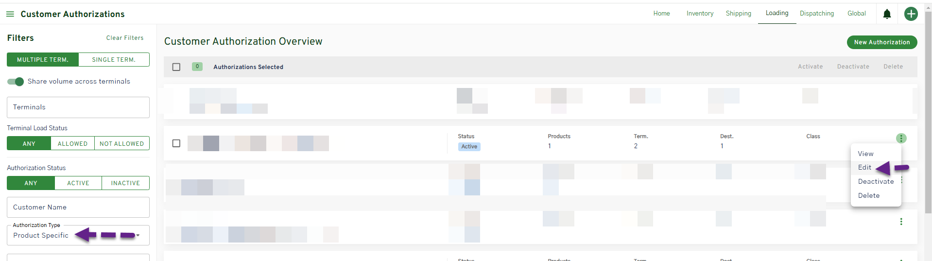 2. When you find the Customer to authorize, click the three vertical ellipse. Click Edit.