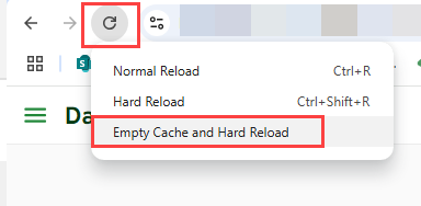- User will right-click the refresh button by your browser URL and select Empty Cache and Hard Reload.