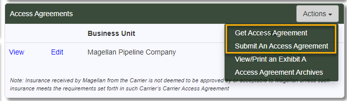 - In the Access Agreements (right-hand column) section, click “Actions” dropdown.