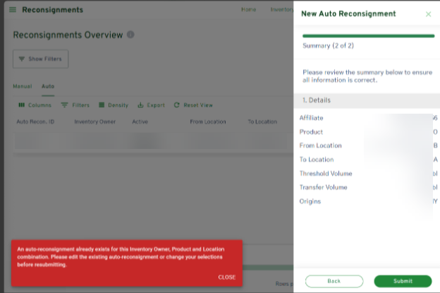 - Clear Duplicate Record Error: Users see a clear message when attempting to create a duplicate Auto Reconsignment.