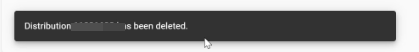 - Delete Distribution: The Distribution ID now shows and is included in the existing visual pop-up notification in the bottom left-hand corner after a user successfully confirms and deletes the Distribution.