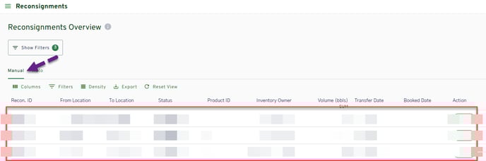 - Copy functionality is available for all Reconsignments, regardless of the status.