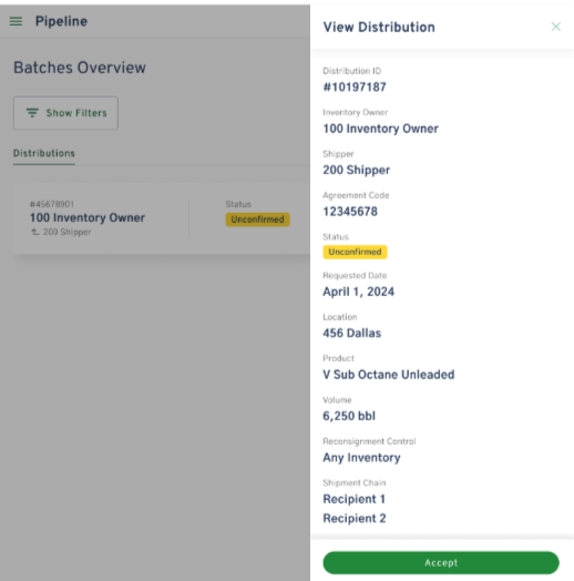 - Users can see the Accept button when the Distribution is "Unconfirmed"