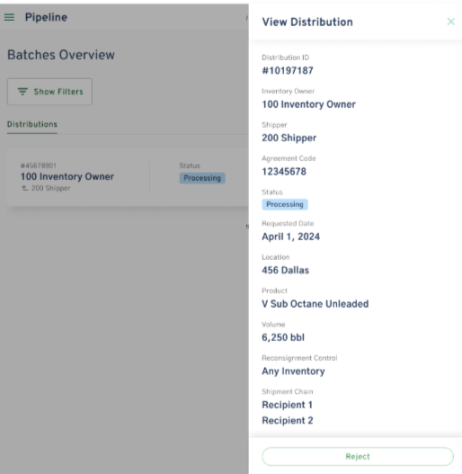 - The Shipment is automatically accepted if the Batch owner and Shipper are the same.
