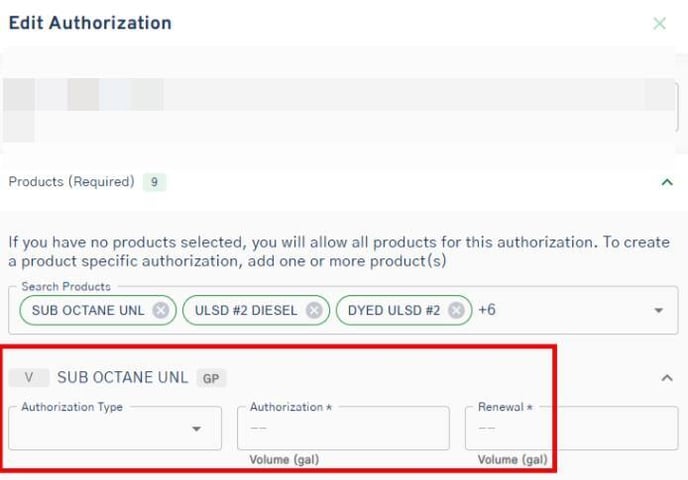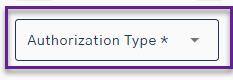 When a user adds a new product, during the Edit Authorization, the drop down selection for Authorization Type is now required as designated by the * (purple box in below screenshot).