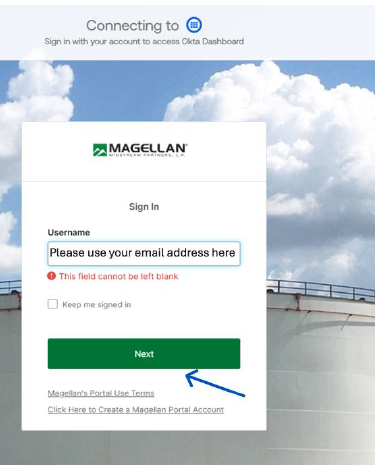 - Access the login page by clicking this link ONEOK Customer Portal.