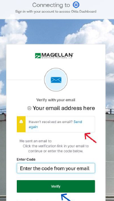 - If you choose to use the code, enter it here and click ‘Verify’. The warning message (red arrow) will appear if you do not reply promptly. Anyone that uses the “Sign In” link in step 7 will not see this screen.