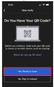 - You will see this screen next that has a QR code. Open the ‘Okta Verify’ app on your Android or iOS devices and continue with the instructions below.