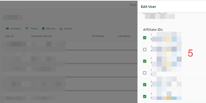 - Select appropriate affiliates for specific user. Scroll down to Feature Permissions.