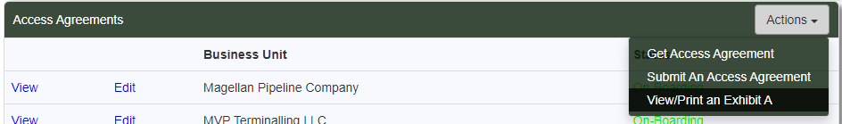 You can find a list of terminals and contact information in the Carrier app by clicking on the "View/Print an Exhibit A" dropdown in Access Agreements.